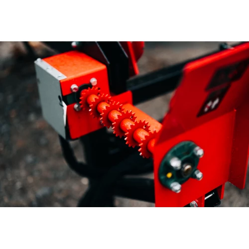 For handling short logs, we recommend an additional third chain beam to be placed in the middle of the table (two chain beams on the edges come standard). We also recommend an additional in-feed roller, which can be purchased separately, for the additional chain beam, as the roller greatly facilitates the feeding of logs to the firewood processor.